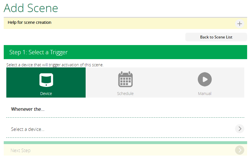 A következő lapon további feltételeket adhatunk meg, vagy tovább megyünk a Next Step gombbal a működtetni kívánt eszközök beállításához.