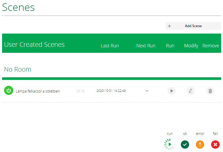 A lejátszás (>) gombbal ki is próbálhatjuk, illetve itt kézzel bármikor elindíthatjuk a megírt folyamatot. De ha más eszközök eseményeihez vagy idő beállításhoz indítva készítettük, akkor innentől kezdve a beállított esemény hatására automatikusan mindig le is fog futni az eseménysor.