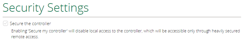 A Security menüpontban egyből az első beállításnál már találkozunk is azzal a lehetőséggel, amit a cikk elején említettünk. A Secure my controller engedélyezése letiltja a helyi hozzáférést a központunkhoz, így már csak felhasználónévvel bejelentkezve a Vera account-on keresztül érhetjük el.