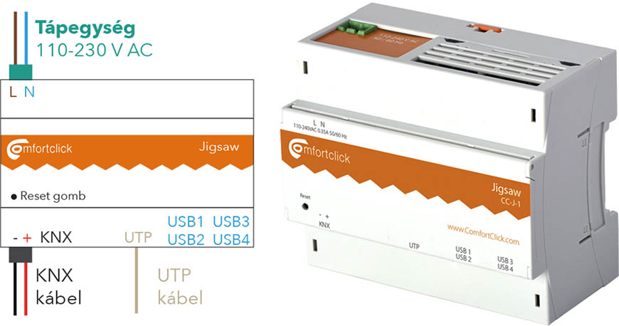 Ha valakinek most csak egy jövőbiztos és megfizethető árú, internetről is elérhető KNX-központra van szüksége, akkor neki készült a ComfortClick Jigsaw KNX. Ez már alaphelyzetben csatlakoztatható a KNX-hálózatra, de a fentebb említett USB-s adaptereknek köszönhetően bármikor bővíthető akár Z-Wave-es eszközökkel is, kihasználva az újabb szabvány vezetéknélküliségét, rugalmasságát, óriási kínálatát és kedvezőbb árait. „Egy központ mind felett!” – és a felhasználó számára már nem is látszik, hogy melyik eszköz melyik szabványt használja, hiszen egyelten kezelőfelületen, egymással tökéletes kapcsolatban kezelhető mind, elfelejthetjük a szabványokat és protokollokat, amelyek korábban csak megkötötték a kezünket és csökkentették lehetőségeinket.