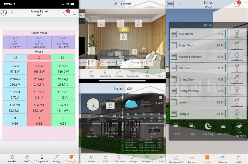 Az alábbi képen a ComfortClick bOS rendszerben kialakított kezelőfelületről készült képernyőfotók láthatók: