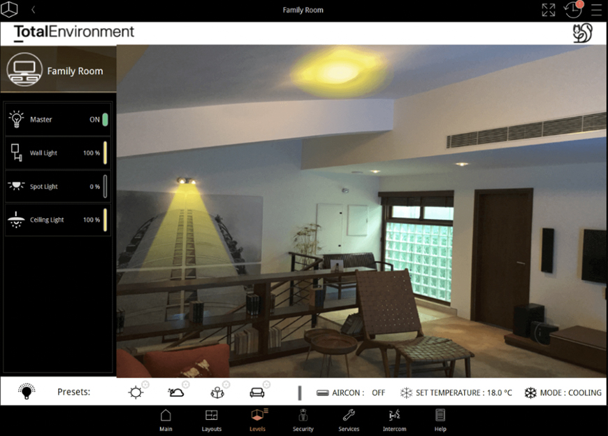 A 800 négyzetméteres villa okosítása a Venbatech India érdeme. Teljesen egyedi ComfortClick bOS kezelőfelülettel adták át, a rendszer és a készülékek vezérléséért a ComfortClick Colibri vezérlőközpont felel.