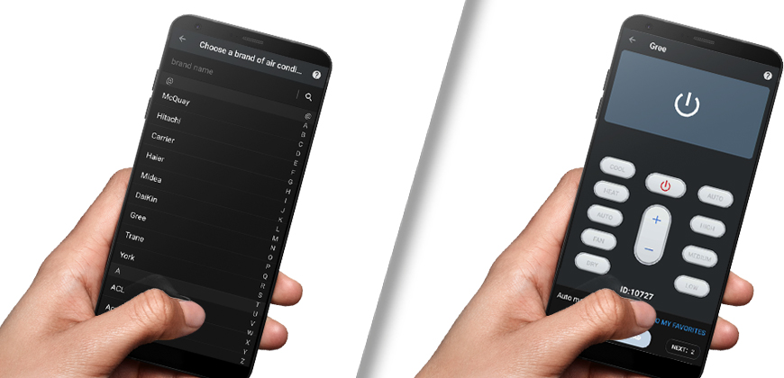 A kijelző felett található felső sávban 4 infra LED kapott helyet, melyeket úgy helyeztek el, hogy minden irányból lefedjék a termosztát körüli teret — egy előre, egy felfelé, a középső kettő pedig jobbra, illetve balra küldi az infra parancsokat. Bárhol elhelyezhetjük, ahol szabad rálátása van a klímaberendezésre. Ezenkívül a termosztát Bluetooth chipet is kapott, így kapcsolódás után telefonos alkalmazással elvégezhetjük a beállításokat. Az alkalmazáson belül kiválasztható a klímamárka, melynek kódjai megjelennek a kijelzőn. Telefonról ki tudjuk próbálni a klíma funkcióit, és ha helytelen kódot választottunk, tovább tudunk lépni, míg meg nem találjuk a megfelelőt. Ezután véglegesítjük a beállításokat, majd az alkalmazás rátölti a termosztátra a kódot a klímánkhoz.