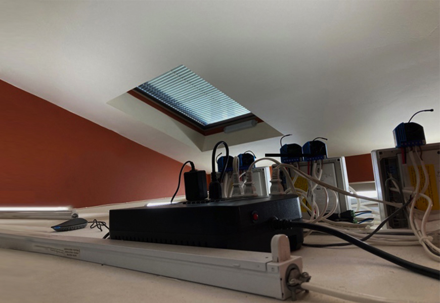 Miután kezébe vette a modulokat, a tetőablak vezérlőinek kimeneteit (amelyek általában az ablakmotorokhoz mennek) csatlakoztatta a modul L1 és L2 csatlakozóiba. A Qubino modulokat 10 amperes 24 VDC tápegység táplálja, amely lehetővé teszi a szimultán működésüket. A modulok kimenetei a Liwin lánchajtóműveihez csatlakoznak. Egyetlen gombnyomás a fali kezelőpanelen teljesen kinyitja vagy bezárja a tetőablakokat. A gombnyomás jeleket bocsát ki az ablakok vezérlőinek, ezzel 3 motort tud irányítani. A gomb több, mint 2 másodpercig tartó nyomva tartása lehetővé teszi a manuális nyitást vagy zárást.