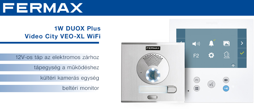 A Fermax 1W DUOX Plus Video City VEO-XL WiFi kaputelefon csomagnak szinte tovább tart a nevét kimondani, mint beüzemelni! Ez egy egylakásos (1W), kétvezetékes rendszer (DUOX Plus), amely tartalmaz mindent, amire szükséged lehet: