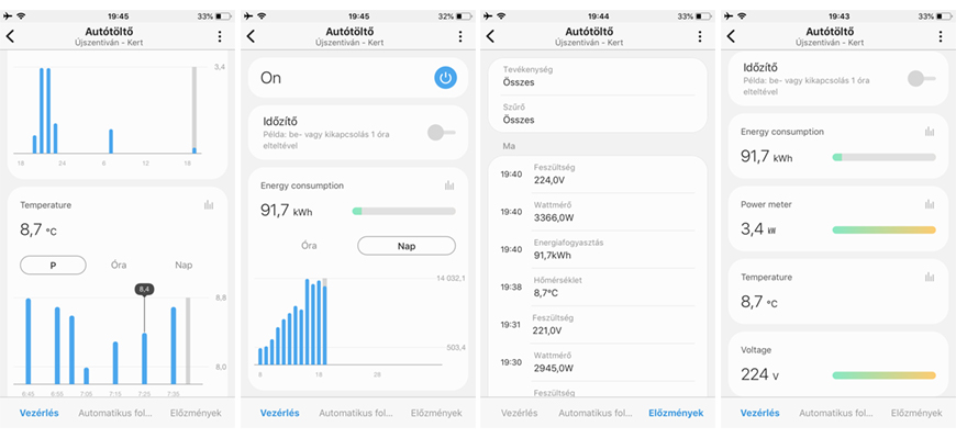 A HELTUN High Load Switch tehát valóban „megérdemli” a SmartThings minősítést. Az eszközök listájában márka szerint gyorsan megtaláltuk. A párosítás egyszerű, mint a többi SmartThings eszköznél. A kezelőfelületen megkapunk minden funkciót és mért adatot, a beállítások menüben még a Z-Wave-es paramétereket is láthatjuk. A kültéri autótöltésnél nagy segítség – mivel az autó távolról nem vezérelhető –, hogy megérkezéskor rádughatjuk a töltőt, de azt bekapcsolni már később bármikor tudjuk a házon belülről. Pl. csak akkor, amikor nem megy a mosógép vagy sütő, amivel párhuzamosan nem bírná el a tesztben szereplő ház 1-fázisos, 16 amperes áramellátása a töltést is.