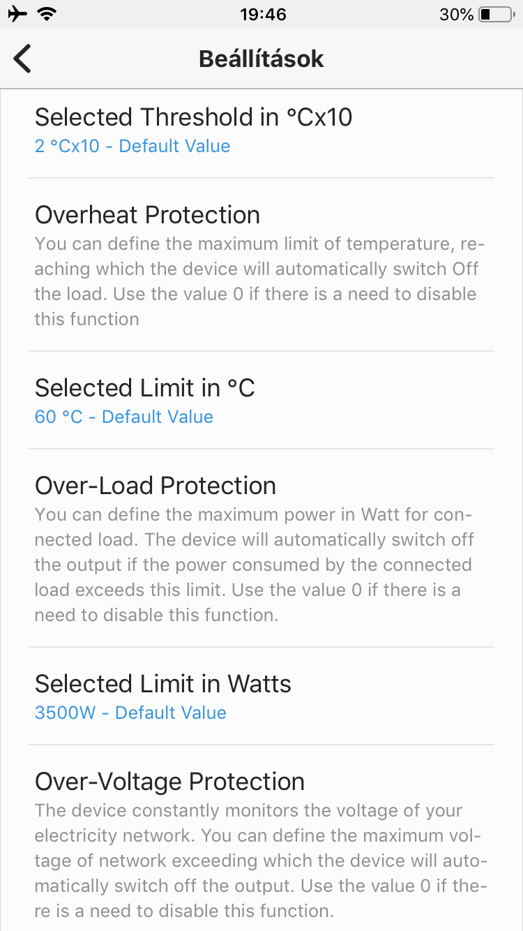 A HELTUN ebben alapos munkát végzett. Az alap funkciók és az eszköz által mért adatok is hiánytalanul megjelennek a kezelőfelületen. De ami igen kellemes meglepetés, hogy az eszköz Z-Wave paramétereit is mind megtalálhatjuk a „Beállítások” (Settings) menüben! Furcsa lehet, hogy meglepetésnek éljük meg ezt a dolgot, de sajnos a SmartThings rendszerben eddig jellemző volt, hogy a Z-Wave-es eszközök paramétereiből csak 1–2 fontosabb jelenik meg, vagy egyáltalán nem látjuk őket. Pedig e paramétereknek nagyon fontos szerepe van az eszközök maximális kihasználhatóságában. A HELTUN szerencsére odafigyelt erre, és illesztőprogramjai kialakításában tökéletes munkát végzett. A paraméterek beállításánál még rövid leírást is kapunk és az alapértelmezett értéket is feltüntetik, hasonlóan, mint a termékleírásban. Szépséghiba, hogy ezek a leírások a magyar nyelvű felületen is angol nyelvűek – ez igaz minden eszköz paraméterleírására is a SmartThings rendszerben.