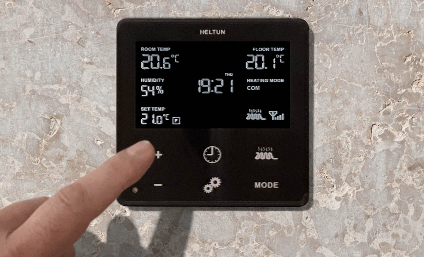 Példánkban a kazán vezérlését egy, a nappaliban található fali termosztát végezte. Természetesen ezt lecseréltük egy Z-Wave-es termosztátra azért, hogy az okosotthon rendszer része lehessen; egy Heltun Heating Thermostat-ot választottunk. Ez egy 230V-tal működő fali szerelvénydobozba szerelhető termosztát. Ebben az esetben rendelkezésre állt a szerelvénydoboz is, és a 230V-os tápellátás is megoldható volt. Ebbe a szerelvénydobozba futottak be a régi termosztáthoz használt vezetékek is, amelyek a kazánt indították. Falba épített szerelvénydoboz és tápellátás hiányában választhattunk volna egy olyan megoldást, ahol egy elemes termosztát és egy kazánt kapcsoló relé párossal oldjuk meg a fűtés indítását, hasonlóan az egyszerű rádiós termosztátokhoz. Erről a megoldásról már régebben írtunk egy cikket, ide kattintva elolvasható. Ezekben a régi házakban még olyan helyzettel is találkozhatunk, amikor egy nagyon régi, még mechanikus (bimetál) elven működő termosztátot kell lecserélnünk – ennek sincs semmi akadálya. Ilyenkor – fogalmazzunk úgy, hogy – csak két „drót” áll ki a falból, ezek összezárását végezte a régi termosztát. Viszont létezik Z-Wave-es termosztát pont ilyen helyzetekre is. Az MCO Home MH4959 egy elemes és úgynevezett szárazkontakt termosztát, amely pontosan ilyen esetekben segít a régi termosztátot leváltani. Nem igényel vezetékes áramellátást és beépített reléje tökéletesen ellátja azt a feladatot, hogy a kazánból jövő vezetékek áramkörét kapcsolja. Ide kattintva egy részletes leírás olvasható erről a termosztátról.