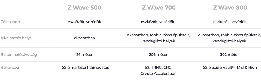 Az egyik legszembetűnőbb változás a Z-Wave 700-hoz képest a vezeték nélküli hatótávolság növekedése. A Z-Wave 800 körülbelül 2500 méteres adatátviteli távolságot kínál, míg elődje „csak” 1500 métert. A lakóépületekben és a többlakásos tömbökben így kevesebb csomópont használatával lehet elérni ugyanolyan jó kommunikációt. Emellett az eddiginél is alacsonyabb fogyasztás is az új protokoll egyik hatalmas előnye, kiváltképp a mai világban… Az Z-Wave verziók összehasonlítását, a fenti táblázat kiegészítését ITT találod.