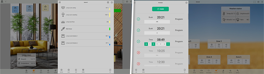 A ComfortClick bOS legújabb frissítése látványos újításokat hozott a felhasználói felületen is. Az új verzió modern megjelenést kínál, gyorsabb hozzáférést biztosít és egyszerűbb vezérlést tesz lehetővé. A jelenetkezelő (Scene Form) átdolgozásával könnyebbé vált az okosotthon működésének testreszabása, miközben az időzítő beállítások (Schedule Form) frissebb kinézetet és gördülékenyebb kezelést kaptak.