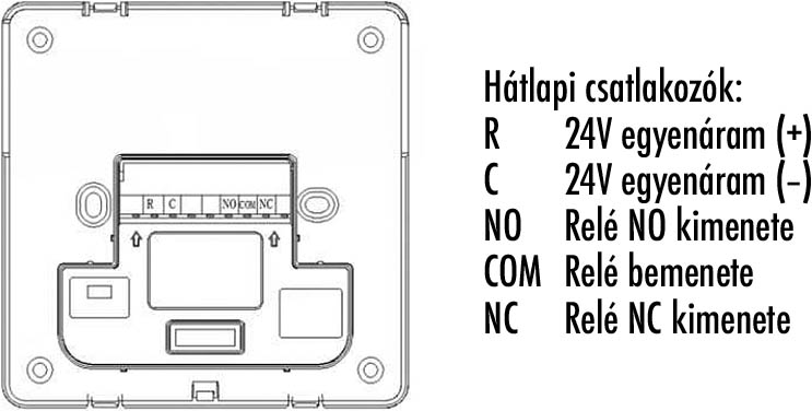 Az MCO Home MH4959 termosztát az első saját szárazkontakt relével is rendelkező elemes termosztát a kínálatunkban. Ha lehetőségünk van rá, az MH4959 is megtáplálható külső áramforrásból (24V egyenárammal), de legegyszerűbben 4 darab 1,5V-os ceruzaelemmel használható. Így biztosan felszerelhető bármely régi fali termosztátunk helyére (legyen az falon kívüli vagy szerelvénydobozt igénylő süllyesztett) anélkül, hogy akár csak a tapétát is megsértenénk. A hátlapján elegendő a kazántól érkező két vezetéket csatlakoztatnunk a korábbi relénknek és kazánunknak megfelelő módon (egyik vezetéket az NO – ha a fűtésigényt az áramkör zárása jelenti – vagy az NC – ha a fűtést az áramkör megszakításával kell jeleznünk a kazánnak –, a másikat pedig a COM bemenetre kell kötni):