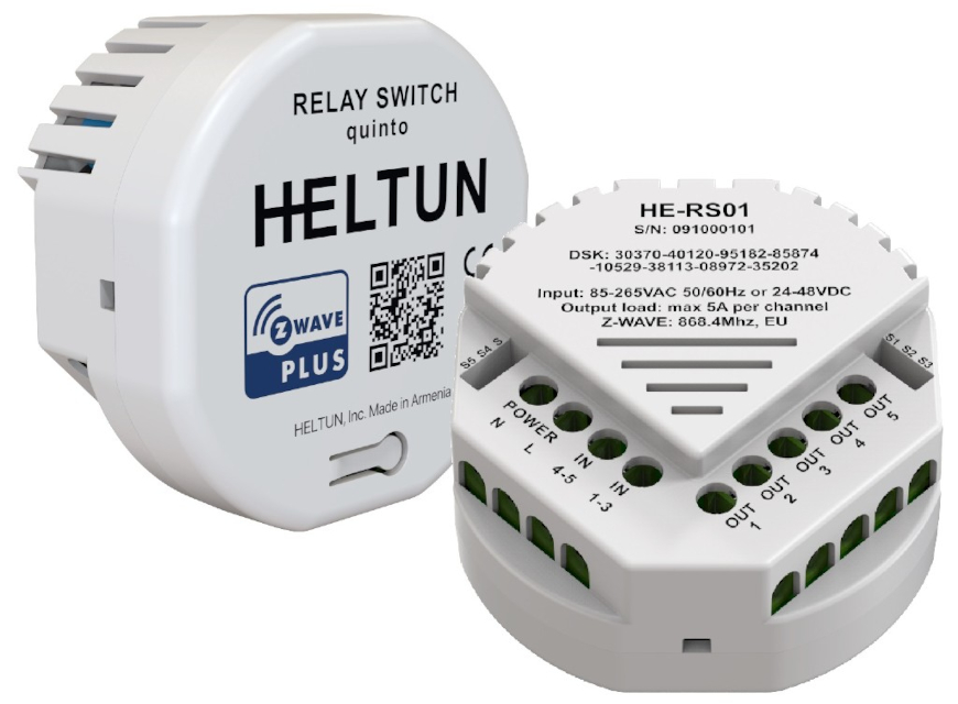 5 szárazkontakt relécsatorna kapcsolására alkalmas, melyekhez összesen 2 bemenet tartozik (külön az 1–3 és a 4–5 relékhez), lehetővé téve, hogy két különböző áramforrású rendszert vezéreljen. Az 5 relé használata is változatos lehet. Használhatjuk mindet ki-/bekapcsolásra, de 1 vagy 2 pár kétirányú motor vezérlésére is. Minden relé maximum 5 Amper áramerősséget tud kapcsolni, és a többi HELTUN termékhez hasonlóan az Advanced Zero-Cross (nullátmenetes) technológiát használja a csatlakoztatott hálózat és készülékek élettartamának növelésére.