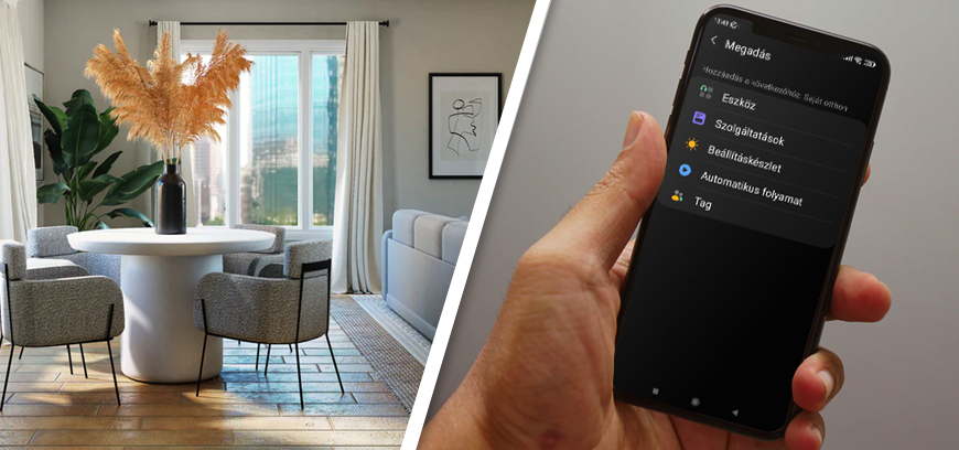 Szintén a felső sorban található a + ikon, amivel az eszközöket, automatizmusokat és a felhasználókat tudjuk hozzáadni, és szerkeszteni. A hátom egymás alatti pont ikonnak pedig a kedvencek menü beállításait formázhatjuk kedvünkre és ki/be kapcsolhatjuk az állapotadatokat: