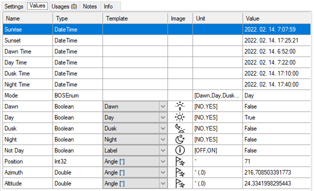 És hogy mire is használhatjuk fel ezeket az adatokat? Természetesen az okosotthonunk eseményeinek, programjainak indítására, üzemmódok beállítására, mért értékek napszak szerinti értelmezésére. De hogy pár gyakorlati példát is mondjunk: a redőnyök vezérlésénél nagyon kényelmes, hogy szürkületkor vagy hajnalban többé nem kell kézzel vagy minden nap ugyanabban az időpontban indítanunk a redőny mozgását, hanem az év minden napján a szürkület aktuális időpontjában fog lezáródni. De egy kültéri vagy lépcsőház világításának működését is befolyásolhatja, hogy a napnak melyik időszakában használjuk. Árnyékolórendszerek automatikus nyitását is köthetjük ezekhez az időpontokhoz. Bizonyos esetekben akár még a riasztó berendezések működésébe is besegíthet, hogy tudjuk, a napnak melyik időszakában vagyunk.