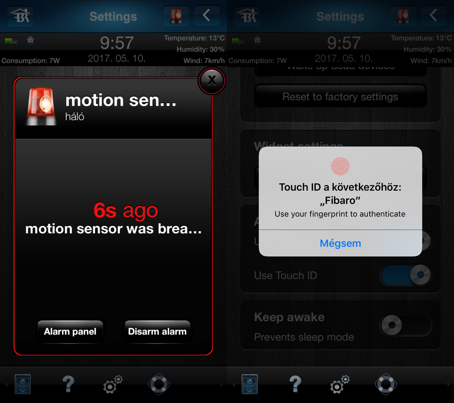 Tegnap este frissült a Fibaro alkalmazás iOS rendszerekre. A frissítés egyik újdonsága, hogy ujjlenyomatot használó iPhone, iPad készülékekkel le lehet kapcsolni a riasztást.