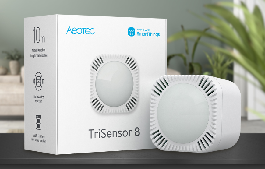 Az Aeotec TriSensor 8 biztosítja az okosotthon-rendszerhez kapcsolódó legfontosabb adatokat, mivel 3 különböző érzékelőt tartalmaz. A mozgásérzékelő a helyiségekben lévő mozgásokat figyeli, a hőérzékelő információkat továbbít a fűtés-hűtés vezérléséhez, a fénymérő pedig a világításvezérlést segíti.
