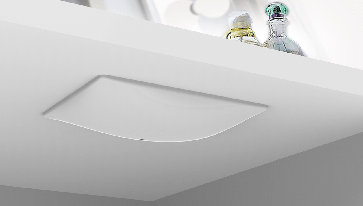 A Swipe – bár jól mutat az asztalon és a falon is – rejtett módon is alkalmazható. Helyezd el bútorok vagy akár a mosdópult alá (csak 178×130×29 mm-t igényel), és még így is reagál a mozdulataidra: