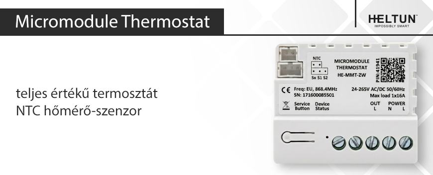 A HELTUN Micromodule Thermostat-nak nincs közvetlen elődje. A régi High Load Switch még egyben tartalmazta a kapcsoló és termosztát funkciót, amelyek közül már a párosításkor választani kellett. Az új generációban ezt a két funkciót teljesen különválasztották: