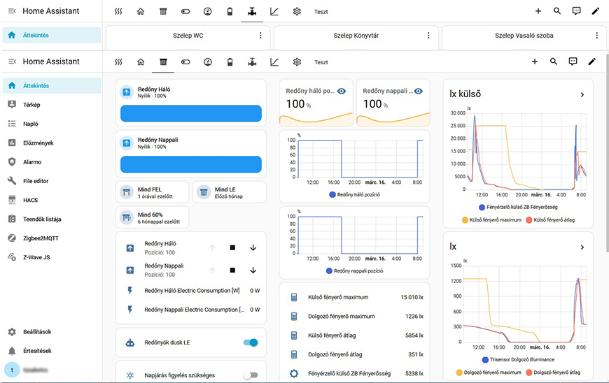 Az okosotthon Home Assistant alapokon működik, és Z-Wave valamint Zigbee eszközöket használ.